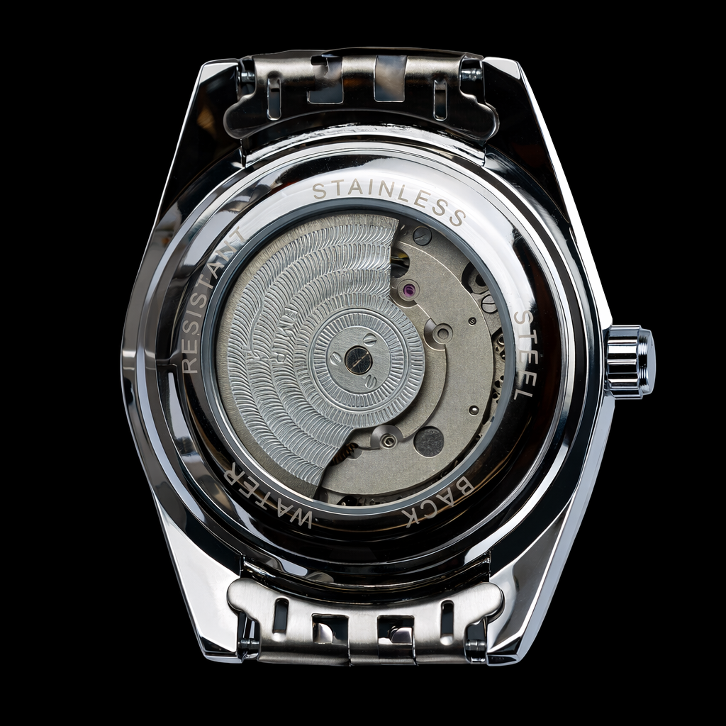 Avec son diamètre de 41 mm, cette pièce affiche une taille idéale, pensée pour s'adapter avec élégance à tous les poignets masculins. Son bracelet en acier inoxydable 304L massif ne se contente pas d'être robuste : il offre un confort de porté exceptionnel et une finition haut de gamme propre aux plus belles pièces d'horlogerie.